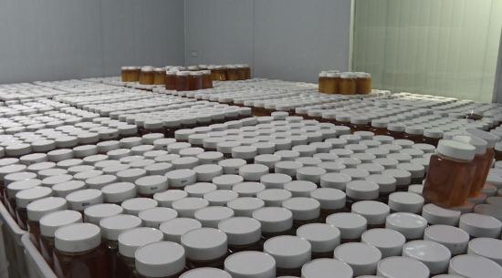 直播间里热火朝天,身后的生产车间也同样是一派忙碌景象。灭菌、搅拌、消泡、装罐……几台装蜂蜜的机器正在忙碌地运转着,旁边的工作人员也熟练地在自己的岗位上工作着。“蜂蜜生产下来之后,我们通过水温化晶、灭菌、搅拌、消泡等处理后就开始进行机械化灌装。一个车间里三个工人就搞定了,平均每天的生产量能够达到3万瓶左右。”四川省蜂运堂蜂业有限责任公司负责人徐鸣秀介绍道。