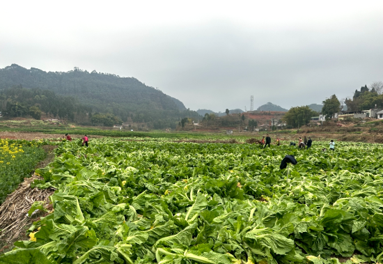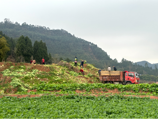 这些青菜都已通过“订单式”销售的模式,卖往眉山的泡菜厂区。通过“订单式”销售的模式,村民只需将青菜采收、装车,由公司负责运输、销售,解决了村民的后顾之忧。“在这边卖方便些,价格还不错。一亩地净收入五六百块钱。”郑云华说。