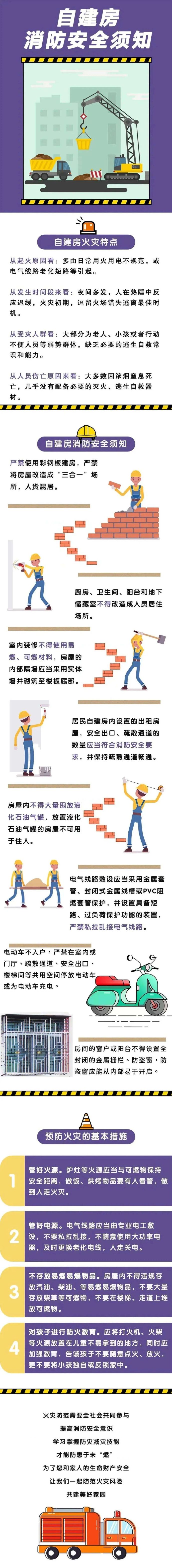 违规住人、违规用火用电、疏散通道堵塞、违规使用易燃可燃材料、电动车违规停放、入户充电……都是导致自建房火灾,特别是经营性自建房火灾高发的主要原因。那么如何防范居民自建房火灾呢?