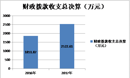 乐山市市中区市场和质量监督管理局2017年度财政拨款收支总决算2522.61万元。与2016年(1851.87万元)相比,财政拨款收、支总计各增加670.74万元,增长26.59%。增加原因主要是市区体制调整后市局下划人员和事权,人员经费和日常公用经费增加。(柱状图3)