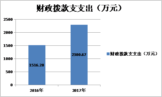 乐山市市中区市场和质量监督管理局2017年度一般公共预算财政拨款支出2300.67万元,占本年支出合计的99.50%。与2016年(1516.28万元)相比,一般公共预算财政拨款支出增加784.39万元,增加51.73%。(柱状图4)