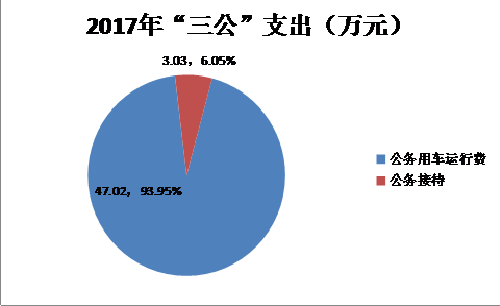 2017年度“三公”经费财政拨款支出决算中,因公出国(境)费支出决算0万元,占0%;公务用车购置及运行维护费支出决算47.02万元,占93.95%;公务接待费支出决算3.03万元,占6.05%。具体情况如下: