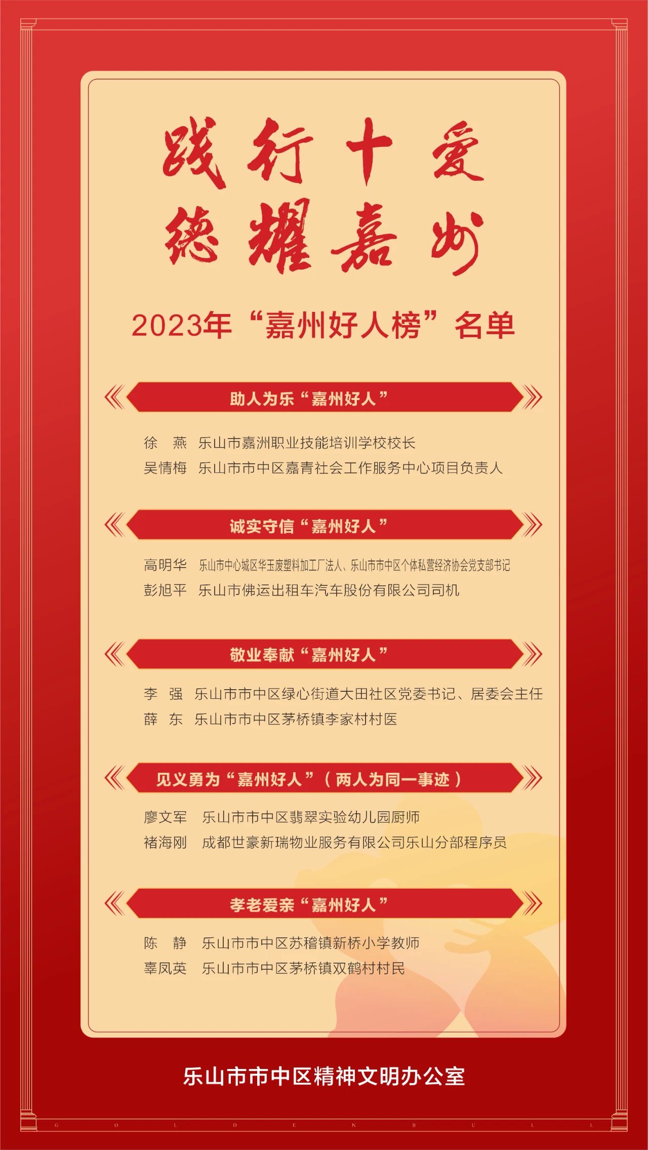 践行十爱?德耀嘉州 | 乐山市市中区2023年“嘉州好人榜”名单