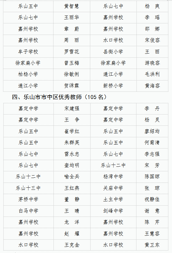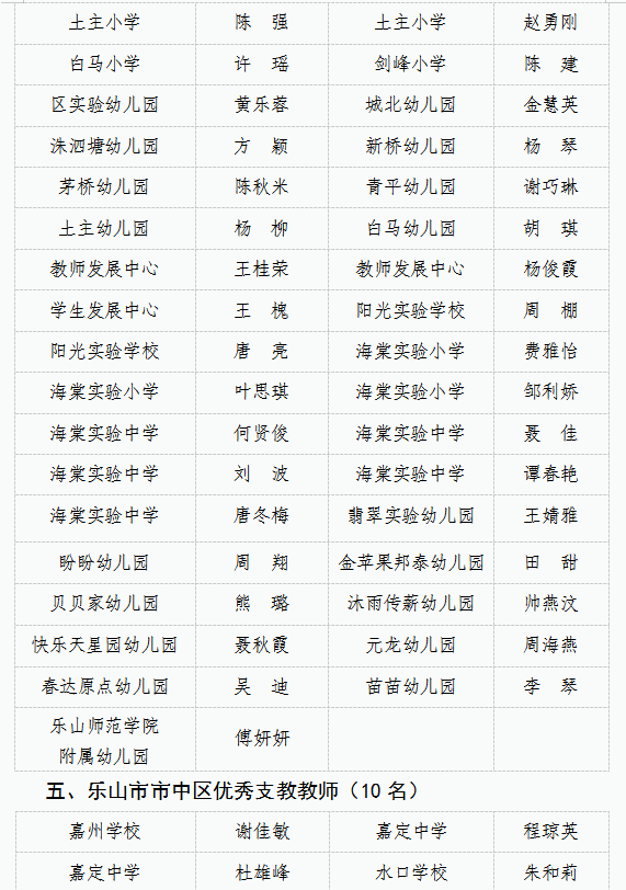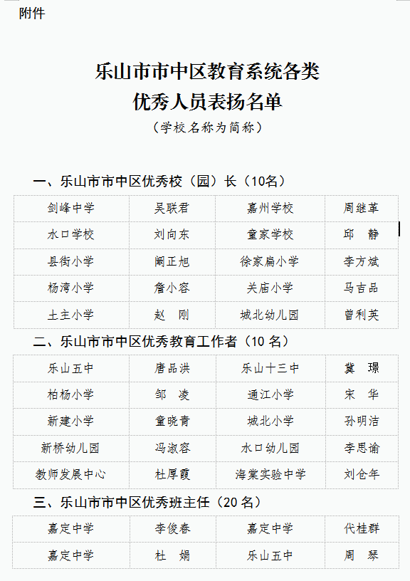 附件:乐山市市中区教育系统各类优秀人员表扬名单