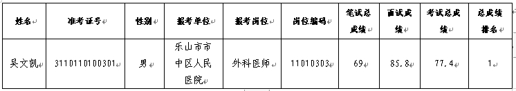 根据中共乐山市市中区委组织部、乐山市市中区人力资源和社会保障局《关于2024年乐山市市中区事业单位公开考试招聘工作人员的公告》规定,通过笔试、面试、体检、综合考察等程序,确定吴文凯为拟聘用人员,现予以公示。