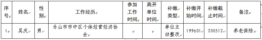 根据四川省人力资源社会保障厅《关于企业职工基本养老保险费缴纳有关问题的处理意见》(川人社办发〔2015〕158号)、《关于下发<企业职工基本养老保险费缴纳有关问题的处理意见>补充意见的通知》(川人社发〔2016〕62号)、四川省社会保险管理局《关于贯彻企业职工基本养老保险费缴纳有关问题处理意见的通知》(川社险办〔2015〕31号)规定,经初步审核,拟办理吴庆的企业职工基本养老保险费补缴业务,现将有关情况予以公示,公示期为7天。如对公示内容存在异议,请在公示期内通过信函、电话等方式反映。反映情况要实事求是、客观公正,并提供联系方式,以便调查核实。