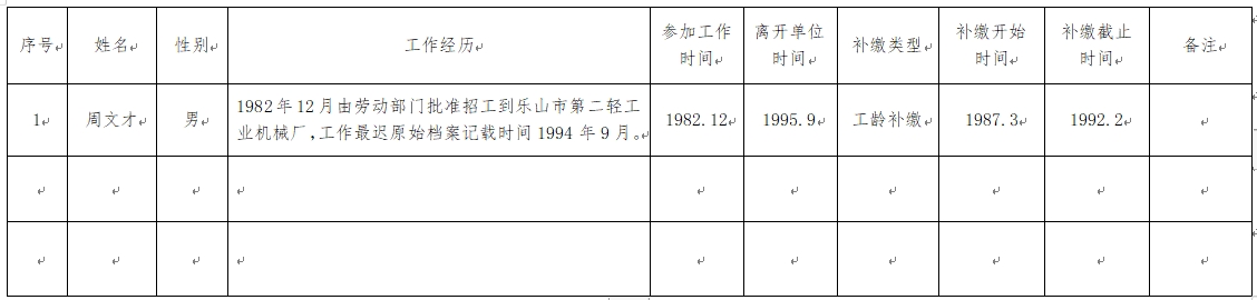 根据四川省人力资源社会保障厅《关于企业职工基本养老保险费缴纳有关问题的处理意见》(川人社办发〔2015〕158号)、省人力资源社会保障厅《关于下发<企业职工基本养老保险费缴纳有关问题的处理意见>补充意见的通知》(川人社办发〔2016〕62号)、四川省社会保险管理局《关于贯彻企业职工基本养老保险费缴纳有关问题处理意见的通知》(川社险办〔2015〕31号)的规定,经初步审核,拟办理周文才企业职工补缴基本养老保险费补缴业务,现将有关情况予以公示,公示期为7天。如对公示内容存在异议,请在公示期内通过信函、电话等方式反映。反映情况要实事求是、客观公正,并提供联系方式,以便调查核实。