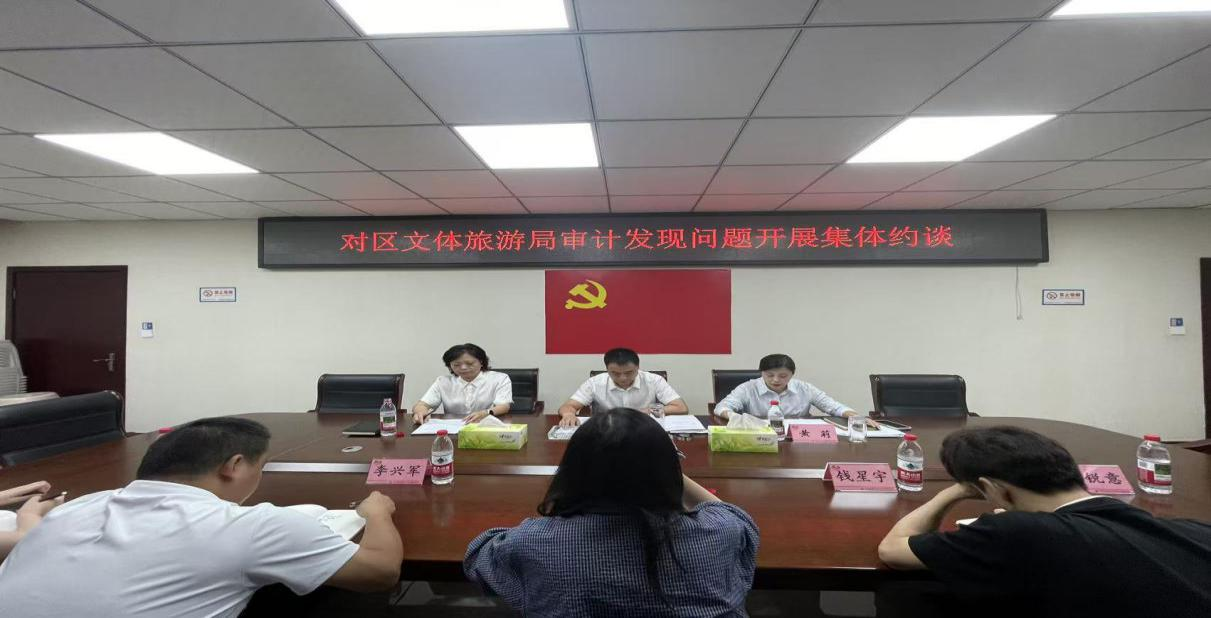 为贯彻落实九届区委审计委员会第十次会议精神,近日,区委常委、组织部部长蒋承靖就部门预算审计发现的问题开展部门班子集体约谈。
