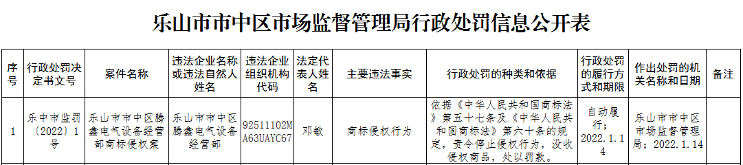 2022年1月6日,本局向当事人送达了乐中市监告[2022]1号《行政处罚告知书》,告知当事人本局拟作出行政处罚决定的事实、理由、依据、处罚内容及依法享有的陈述、申辩的权利。当事人在法定期限内未行使陈述、申辩权。