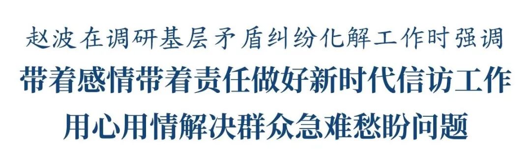 赵波在调研基层矛盾纠纷化解工作时强调:带着感情带着责任做好新时代信访工作,用心用情解决群众急难愁盼问题