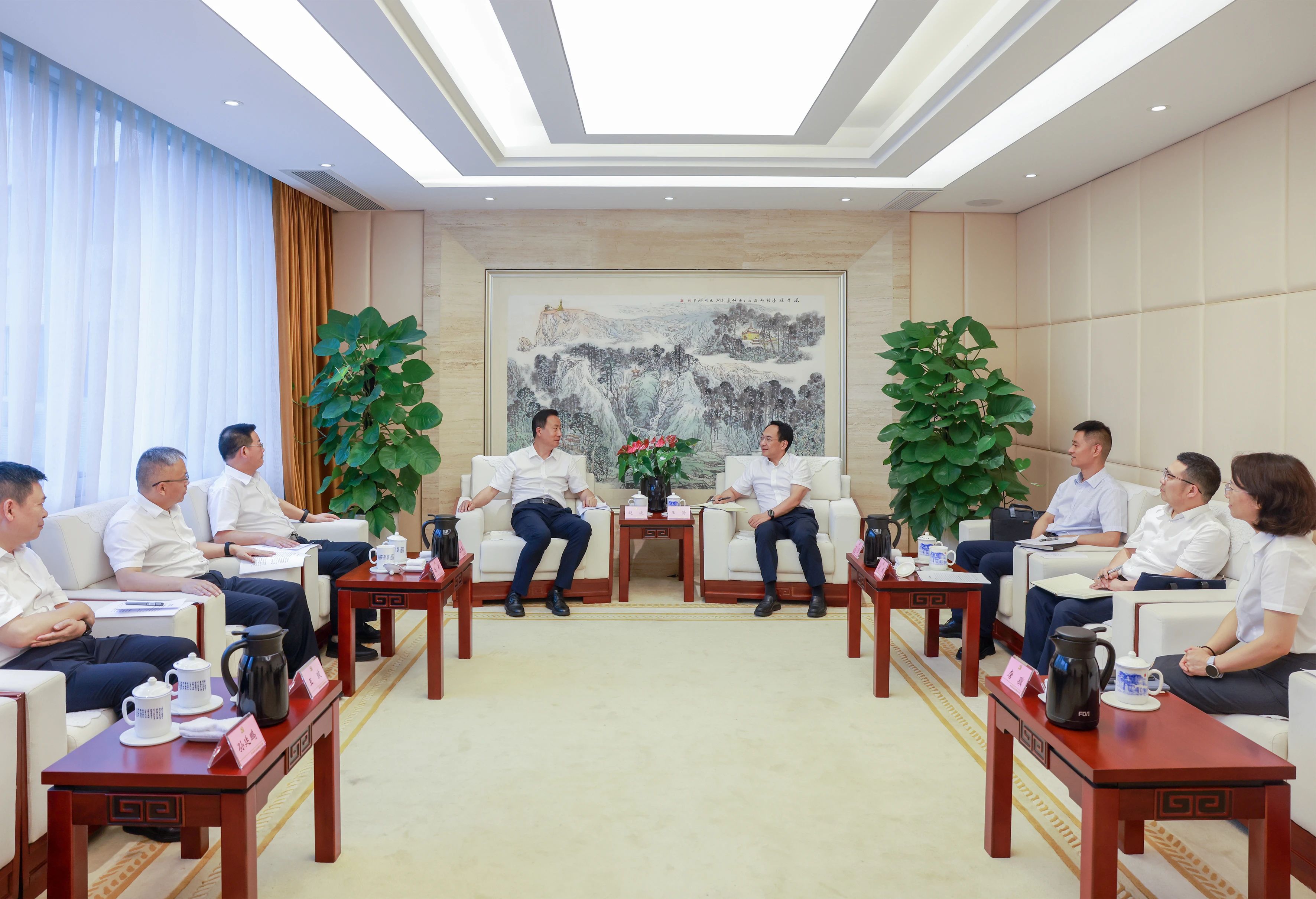 6月18日,市委书记赵波,市委副书记、市长赵迎春在乐山会见四川农商联合银行党委副书记、副董事长、行长王涛一行。