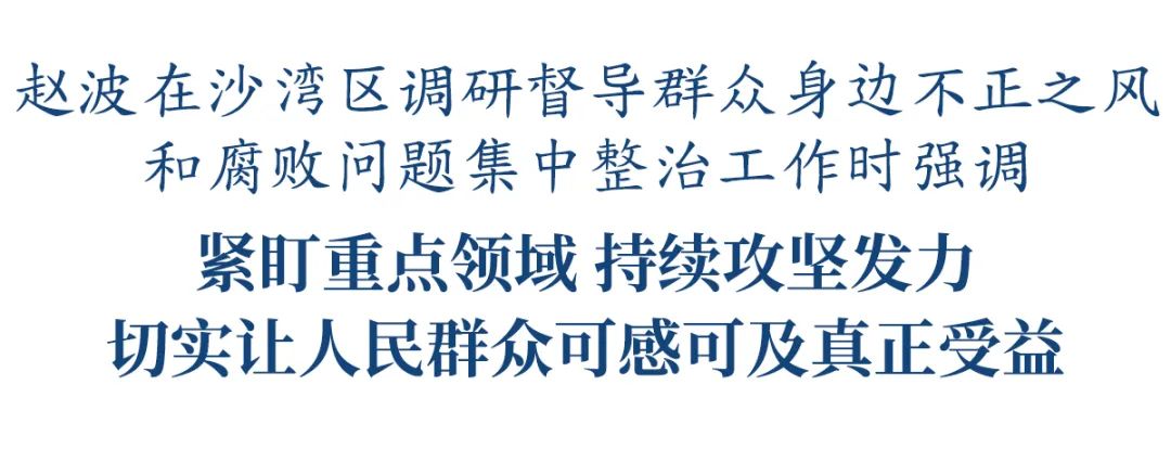赵波在沙湾区调研督导群众身边不正之风和腐败问题集中整治工作时强调:紧盯重点领域持续攻坚发力,切实让人民群众可感可及真正受益