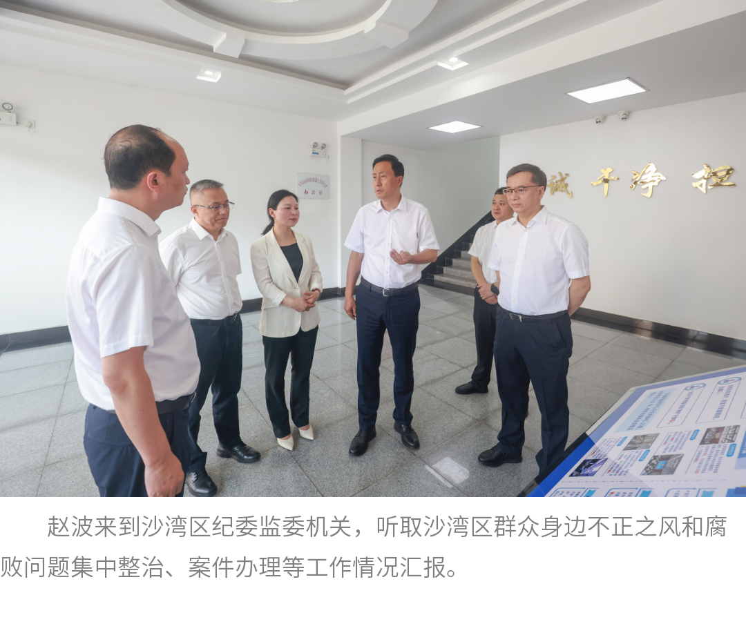 赵波来到沙湾区纪委监委机关,听取沙湾区群众身边不正之风和腐败问题集中整治、案件办理等工作情况汇报。他强调,整治群众身边不正之风和腐败问题,是维护群众切身利益、厚植党的执政根基的有力举措和重要抓手。要坚持系统施治、标本兼治,集中力量打好乡村振兴、教育医疗、养老社保等领域突出问题专项整治攻坚战,坚决有力查处群众身边“蝇贪蚁腐”,深化以案促改促治,努力实现政治效果、纪法效果、社会效果有机统一。要把集中整治与开展深入贯彻中央八项规定精神学习教育、整治形式主义为基层减负结合起来,深入开展“节奏更快、效率更高、质量更优”主题实践活动,切实把整治成效转化为高质量发展实效。
