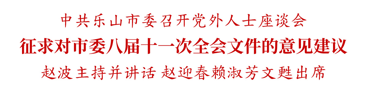 中共乐山市委八届十一次全会举行前夕,市委召开党外人士座谈会,就全会文件听取各民主党派市委会、市工商联负责人和无党派人士代表的意见建议。市委书记赵波主持会议并讲话。市委副书记、市长赵迎春,市人大常委会主任赖淑芳,市委副书记文甦出席。