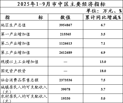 2025年1-9月市中区主要经济指标