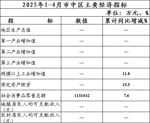 2025年1-4月市中区主要经济指标