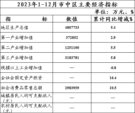 2023年1-12月市中区主要经济指标