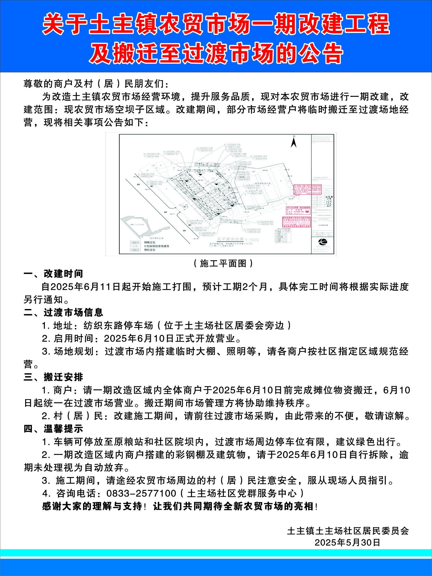 关于土主镇农贸市场一期改建工程及搬迁至过渡市场的公告