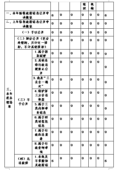 一是结合我局实际,严格依法依规办理申请,进一步建立健全登记、审核、办理、答复、归档等工作制度。2020年全年,我局共接收信息公开申请6条,市中区政府网站公开信息26条,其中工作动态7条、公示公告7条、预决算及“三公”经费5条、上年度报告1条、行政处罚决定书6条。二是全面梳理细化本领域公开事项,按照区政府相关要求对照《试点领域基层政务公开标准目标汇编》中的26项基层政务公开标准目录,结合我局行政权力事项清单和公共服务事项清单,梳理完善保障性住房领域43项、农村危房改造领域16项、市政服务领域10项、城市综合执法领域16项,共计85项。
