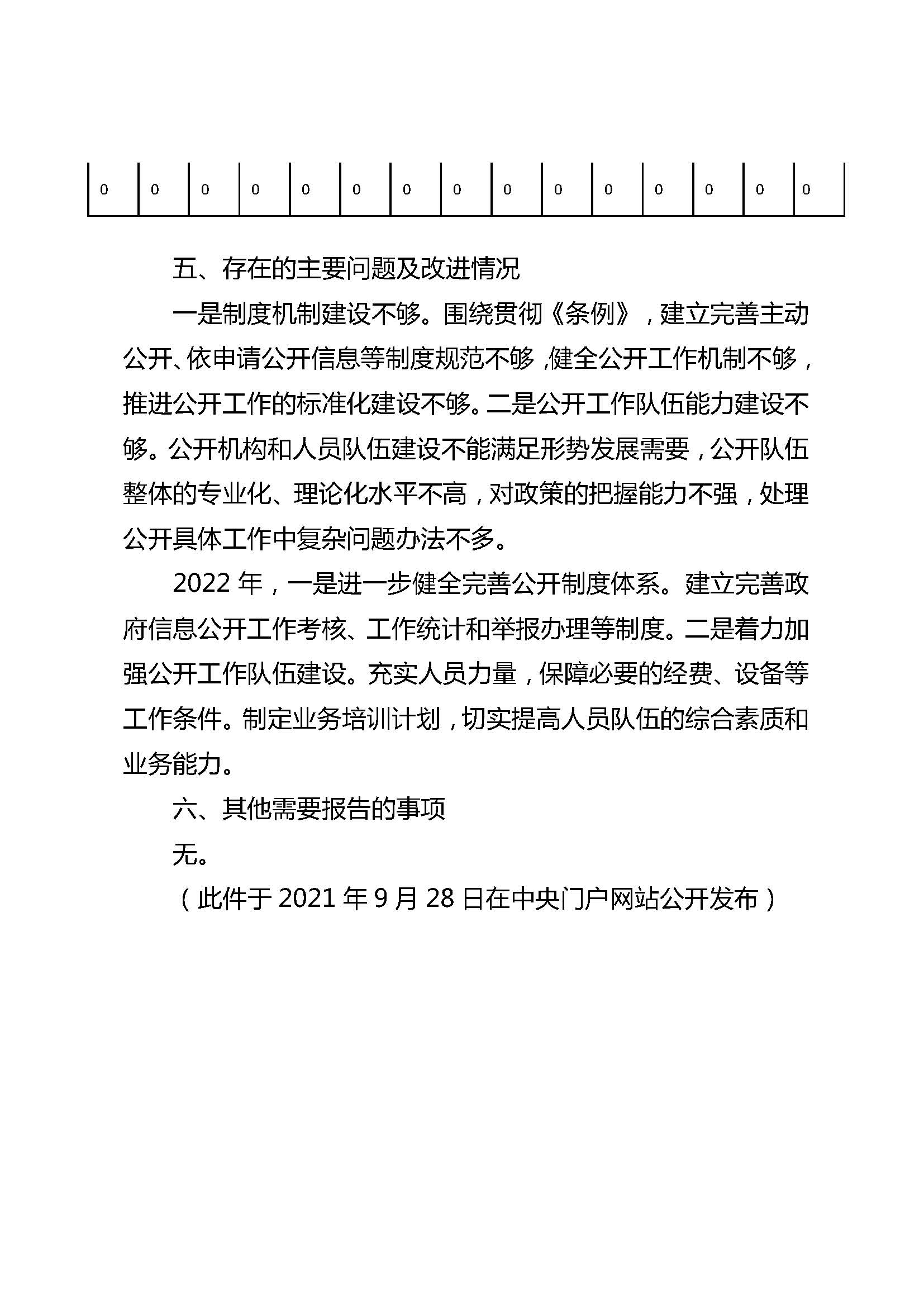 2022年,一是进一步健全完善公开制度体系。建立完善政府信息公开工作考核、工作统计和举报办理等制度。二是着力加强公开工作队伍建设。充实人员力量,保障必要的经费、设备等工作条件。制定业务培训计划,切实提高人员队伍的综合素质和业务能力。