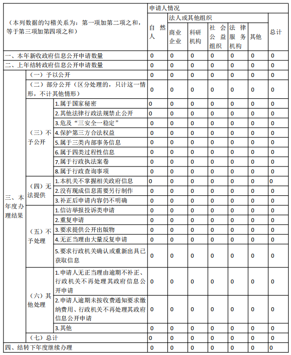 三、收到和处理政府信息公开申请情况