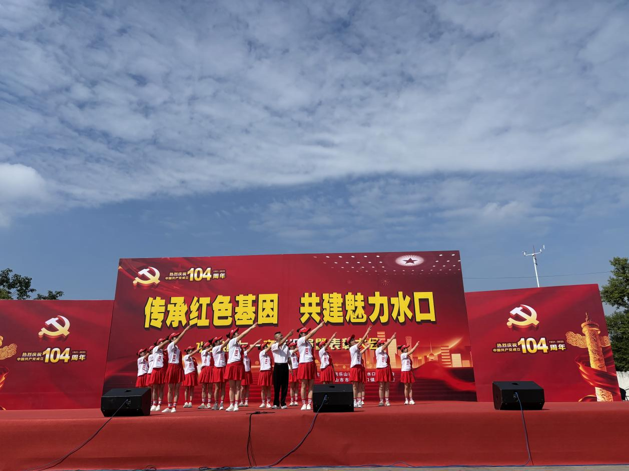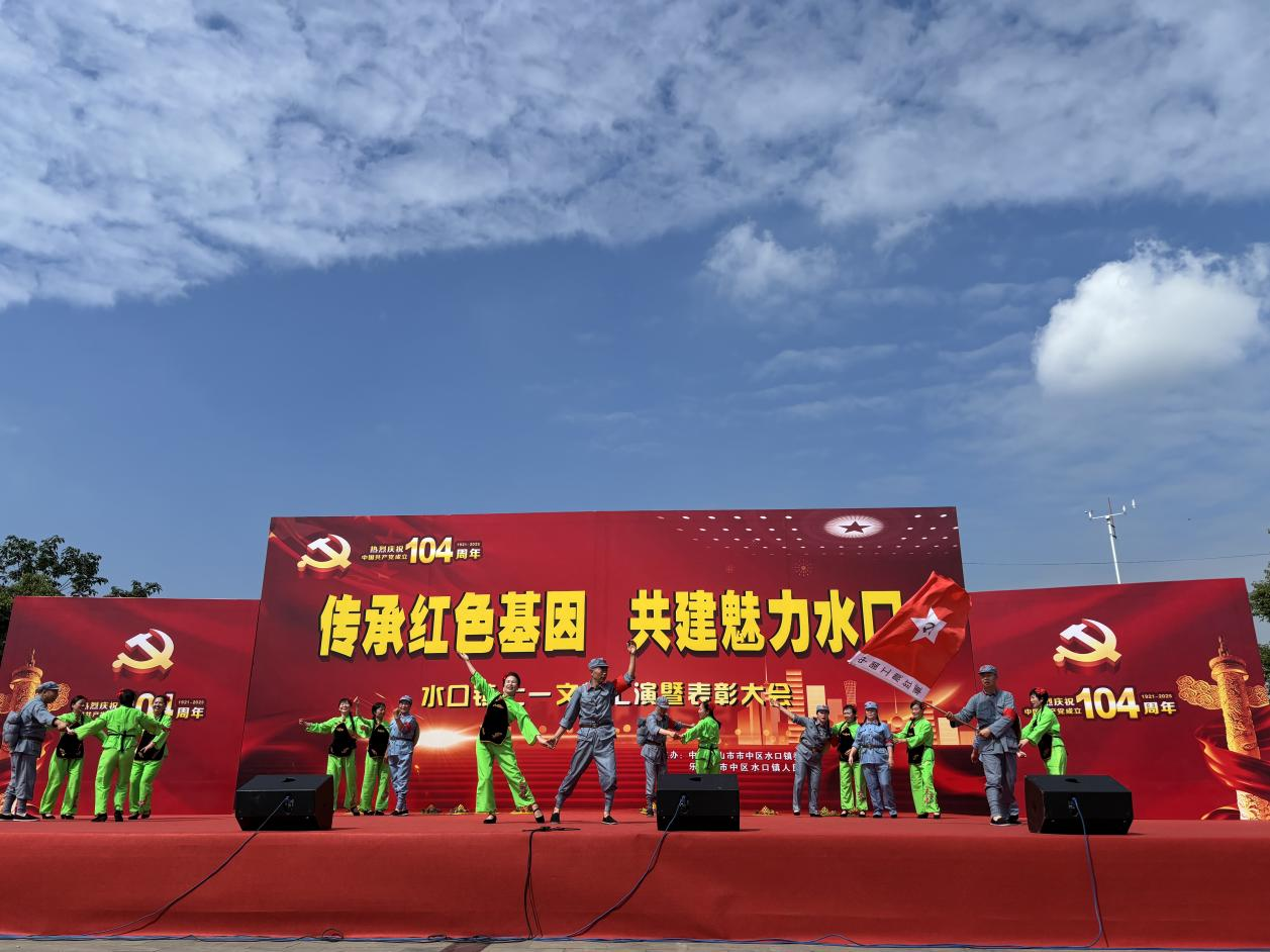 为庆祝中国共产党成立104周年,重温党的光辉历程,歌颂党的丰功伟绩,6月26日,由水口镇党委、水口镇人民政府主办的“传承红色基因 共建魅力水口”迎七一主题文艺汇演活动在乡村大舞台举行。现场气氛热烈,党员和群众齐聚一堂,共同为党的生日献上诚挚的祝福。