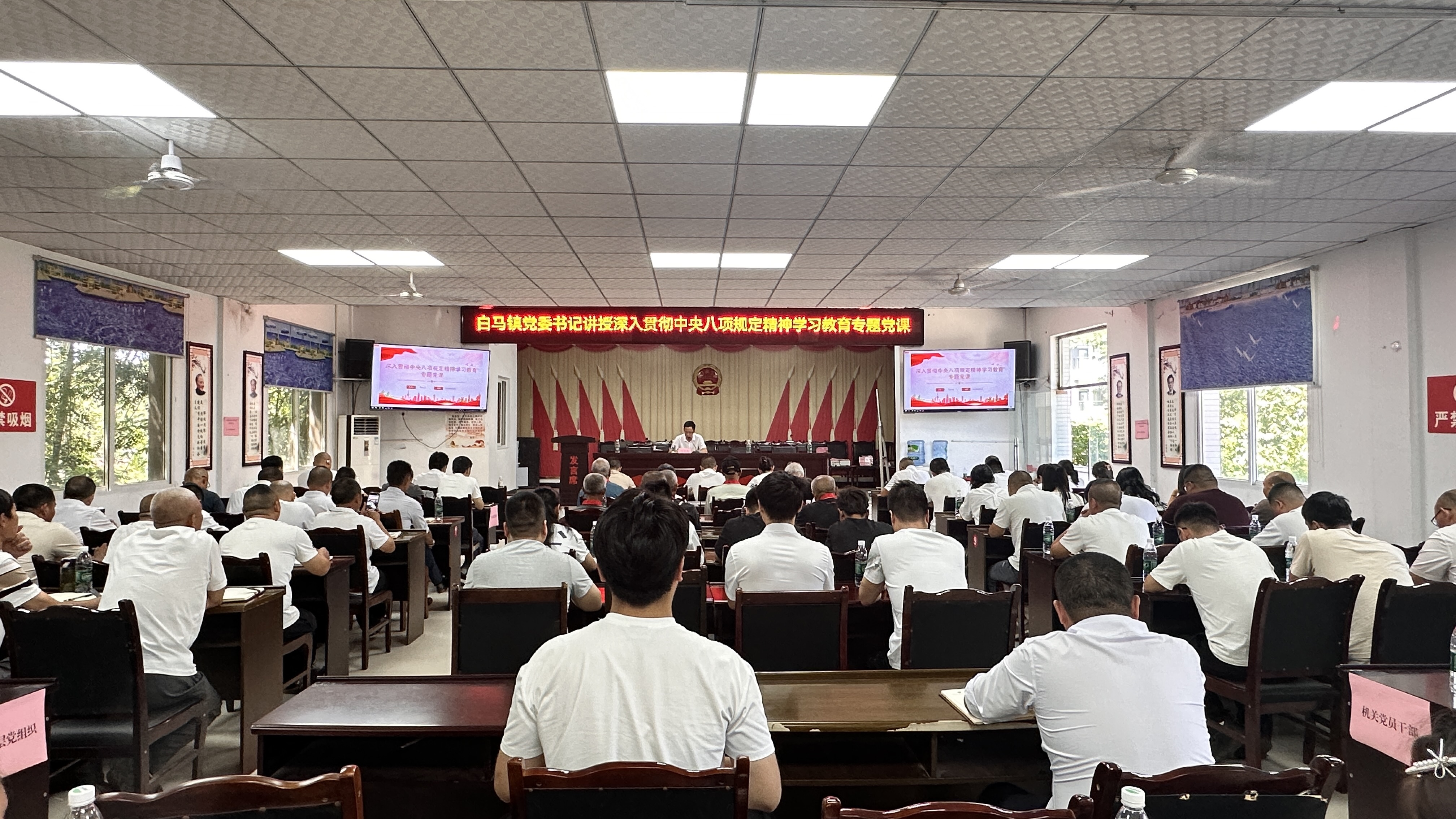 白马镇党委书记马文杰以“守牢八项规定‘铁规矩’ 锤炼实干为民‘硬作风’”为主题,围绕历史脉络、现实挑战、目标要求、实践路径四个维度,为大家上了一堂生动的党课。党课从历史到现实,从理论到实践,重点解读中央八项规定精神,强调全镇党员干部要以中央八项规定精神学习教育为契机,构建“学查改”一体推进机制,推动作风建设走深走实。全体党员干部认真聆听,仔细记录,在思想的碰撞中进一步明确自身责任与奋斗方向。