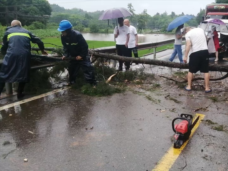 暴雨过后,各村道路因强降雨出现树木倒伏、山体滑坡等不同程度受阻情况。镇政府迅速组织各村应急队伍,第一时间赶赴现场,通过人工砍伐、工程机械清障对受阻道路进行疏通,8处受阻道路已恢复通车,保障道路交通顺畅安全。