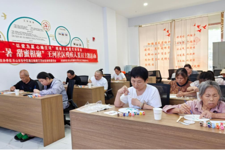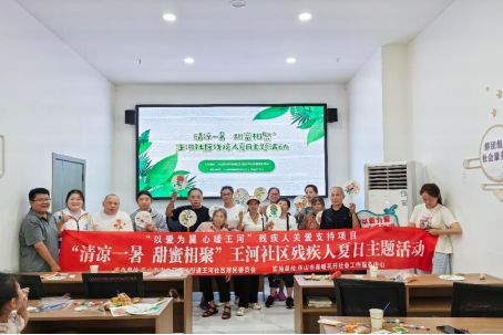 2025年7月24日,由乐山市市中区通江街道王河社区居民委员会主办、乐山市春暖花开社会工作服务中心承办的“清凉一暑 甜蜜相聚”社区残疾人夏日主题活动,在王河社区便民服务中心温馨开展。此次活动邀请了多名社区残疾人参与,通过趣味互动、手工创作等环节,为他们搭建交流平台,传递关爱与温暖。王河社区还为参与者准备了清甜水果,大家围坐品尝,分享手工创作心得、生活里的小确幸,残疾人也在其中切实感受到社区关怀与同伴支持,幸福与归属感在心底蔓延。
