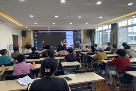 在声乐课上,老年学堂声乐课堂别出心裁,将歌曲《上春山》教学与杯子舞创意融合,为学员们带来了一场充满趣味与活力的艺术体验。
