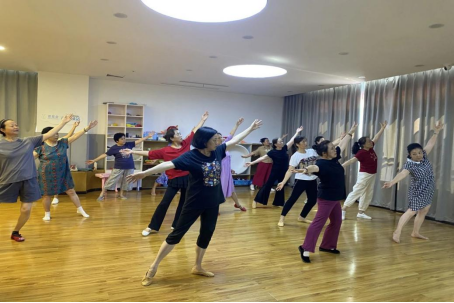 在形体舞蹈课程上,。授课老师细致地讲解舞蹈动作,亲身示范,从基本步伐到复杂的舞蹈组合,一步步引导老人们学习。