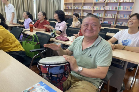 茶坊社区老年学堂乐器课近期推出架子鼓与非洲鼓特色教学,还针对老年人学习特点,将复杂的击打技巧拆解为简单的分步练习,让老年学员们在激昂鼓点中释放活力,感受打击乐的独特魅力。