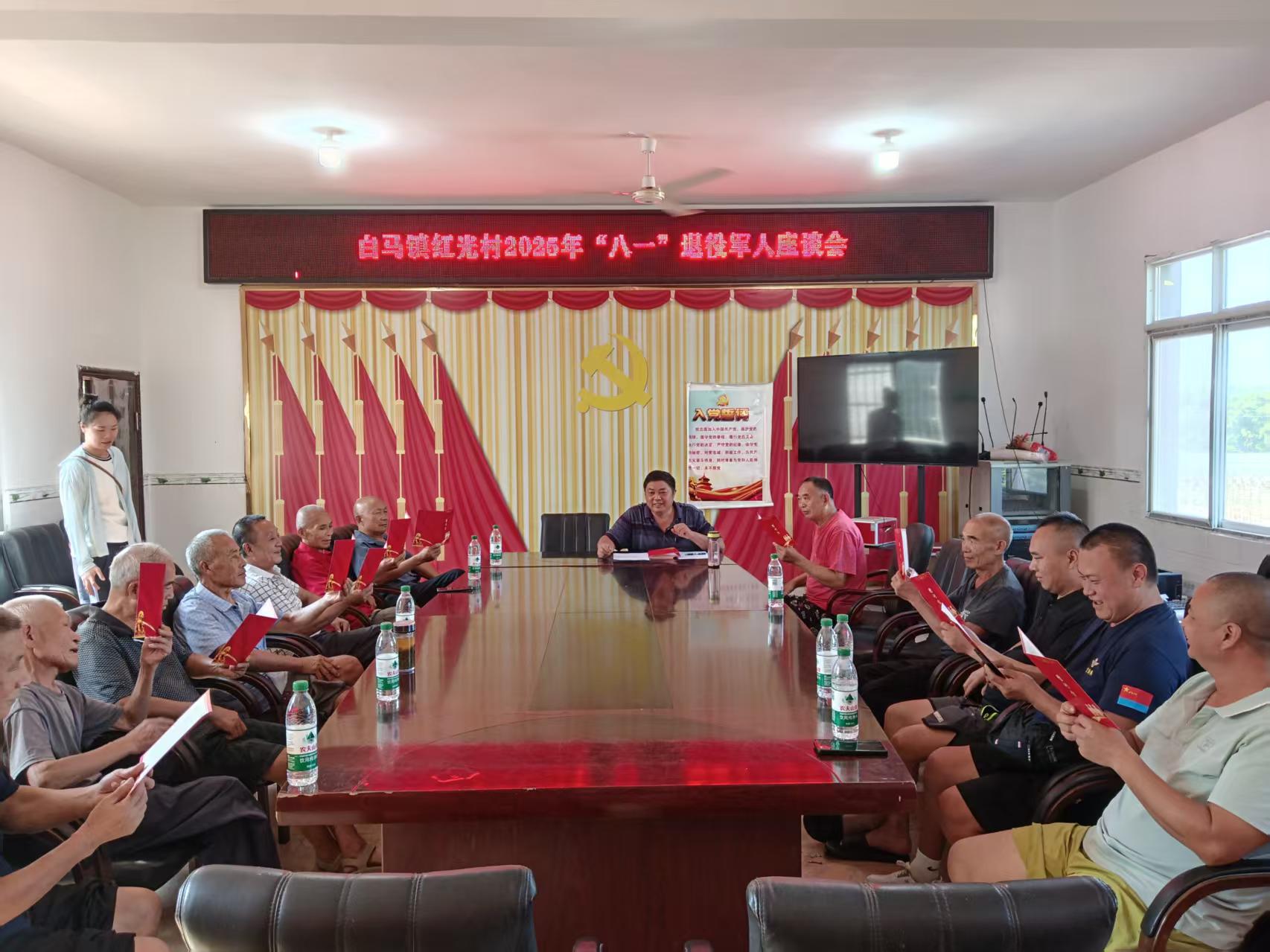 在中国人民解放军建军98周年之际,为弘扬拥军优属、拥政爱民的光荣传统,进一步营造关心关爱退役军人、军属及优抚对象的浓厚氛围,白马镇各村(社区)纷纷组织召开2025年“八一”建军节座谈会。此次座谈会旨在向退役军人及现役军人家属致以节日的问候,共叙军民鱼水深情,共谋白马发展新篇。