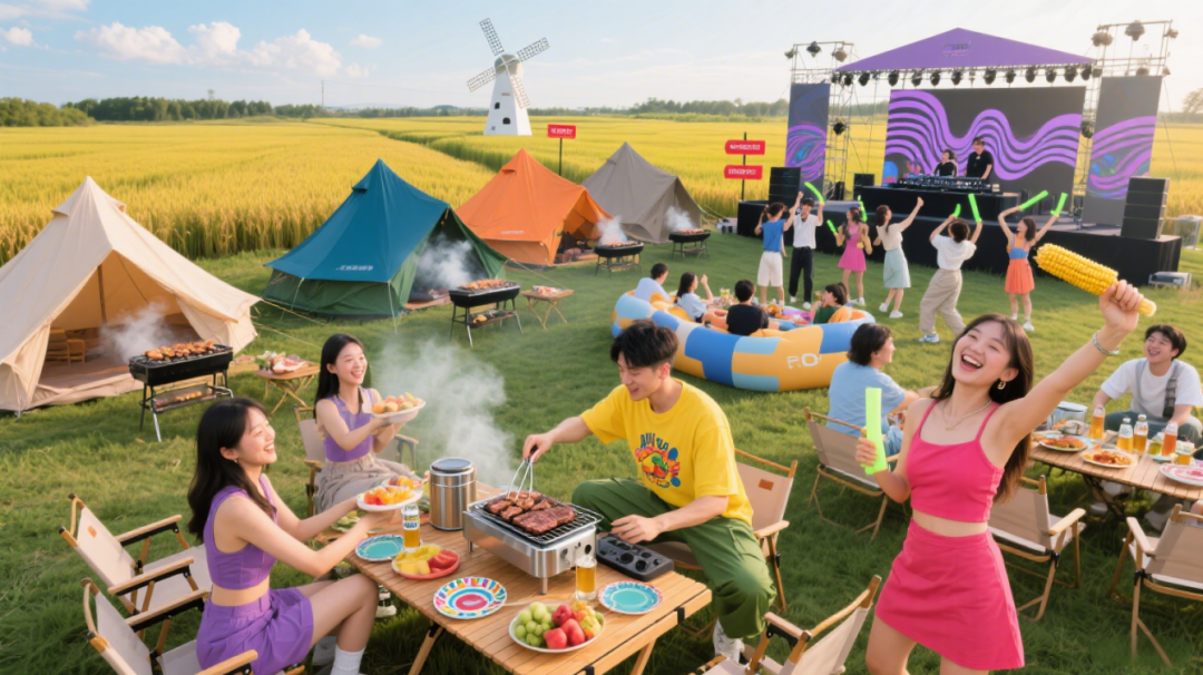 跑山猪五花+有机蔬菜,露营风烧烤宴!本地乐队现场唱响《稻香》,边吃边嗨到日落!
