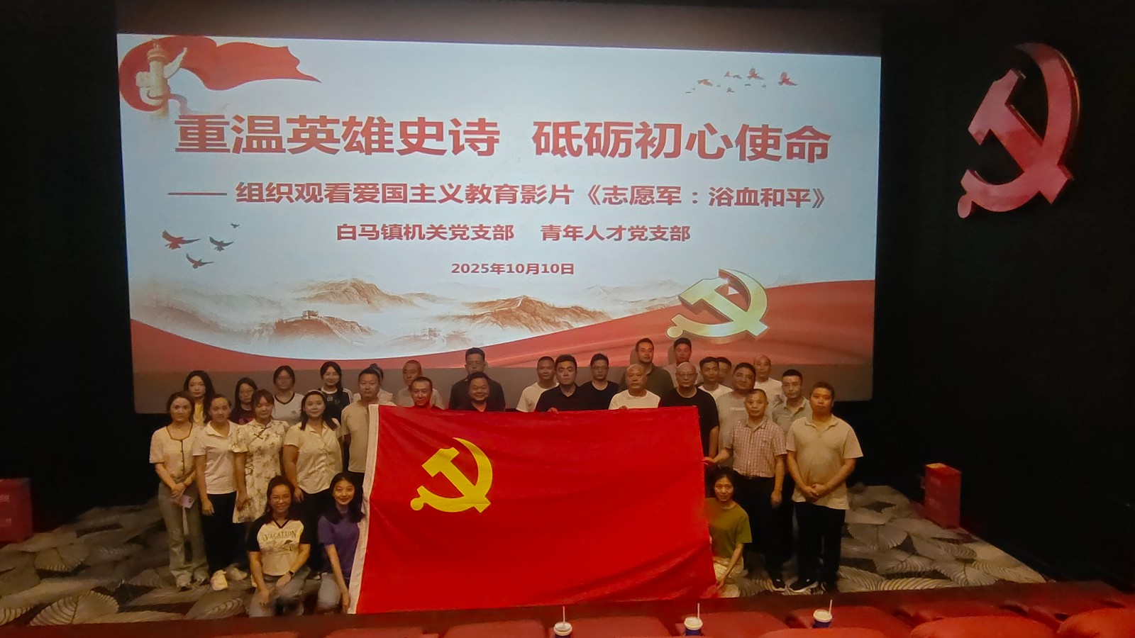 为弘扬伟大抗美援朝精神、激发党员干部干事创业热情,10月10日下午,白马镇机关党支部、青年人才党支部组织开展“重温英雄史诗 砥砺初心使命”主题观影党日活动,集中观看爱国主义影片《志愿军:浴血和平》,在光影叙事中重温历史,在温情氛围中凝聚力量。