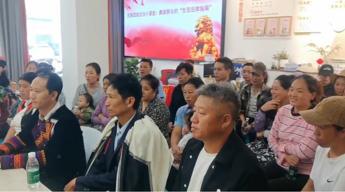 随后开展的“民族团结法治小课堂”上,社区网格员啥妈拉子用彝语“拉家常”的方式,围绕《治安管理处罚法》、未成年人权益保护、农村购房注意事项及务工签约等实际问题,进行了生动讲解,引导群众善用法律维权,并推荐关注普法宣传活动、遇到困难时咨询12348法律服务热线。参与群众纷纷表示:“通过此次活动学习了更多法律知识和维权途径,心里更踏实了!”。