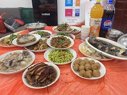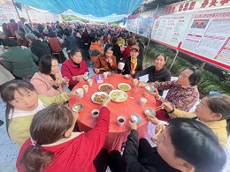 文艺汇演结束后,温馨的敬老坝坝宴正式开始,村“两委”干部与志愿者们热情地引导老人们入座,东坡肘子、粉蒸肉、清蒸鱼……一道道色香味俱全的菜肴陆陆续续被端上了餐桌,百余名老人欢聚一堂,喜迎重阳佳节。席间,村干部还与老人们亲切交谈,询问他们的身体和生活状况。整个宴席现场气氛热烈、其乐融融,大家尝着美食,聊着家常,回忆往昔岁月,畅谈今日幸福生活,浓浓的邻里情、敬老意在欢声笑语中流淌。