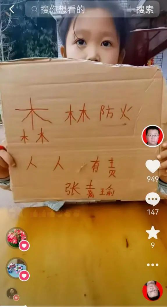 同时,从激发孩子乐趣,增强孩子社会实践能力着手,发动有林地的家长带领孩子参与森林防灭火宣传视频演出,自制家庭森林防火警示牌,悬挂在自家山林入口处。形成了一个孩子带动一家人参与森林防灭火宣传,党员干部群众齐上阵参与森林防灭火工作的良好氛围。