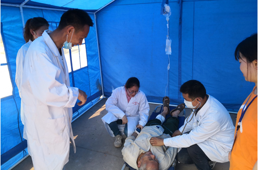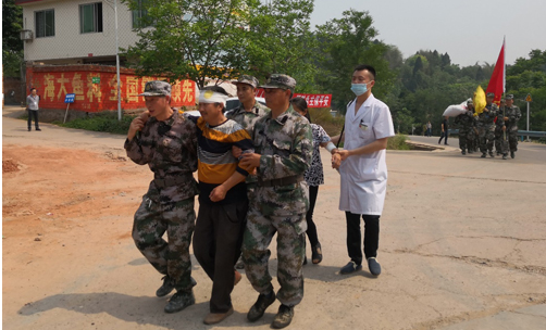 上午11点整,演练开始后,在现场总指挥的命令下,青平镇地质灾害应急预案迅速启动。交通治安组迅速奔赴受灾现场设立警戒区,应急抢险组进入灾区有序组织群众撤离。医务人员将受伤村民抬出危险区,在简单包扎,随后转移到安置点做进一步处理。在安置好受灾村民后,工作人员现场发放救灾物品,稳定受灾村民的情绪,同时灾情检测组赴受灾地点进行查看统计,确定险情点和受灾情况。随后,技术人员对灾区灾情进行调查、评估、分析、预测,及时提供应急对策,确保险情解除,村民不受二次灾害威胁。