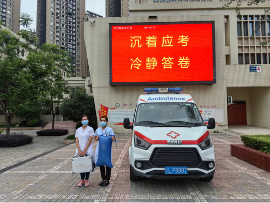 三是点位保障全要素。为做好保障工作,印制下发了《乐山市市中区2023 年中高考医疗保障和新冠病毒感染防控应急处置工作实施方案》,在7个考点设置了医疗保障固定点,按照“三个一”原则对车辆和人员进行配置,即:现场配备救护车1辆,1名医师和1名护士,人员均具备急诊救治能力。储备了一般情况和特殊情况处置的药品和器械等物资,一旦出现需医疗急救的患者,保障点将在第一时间开展紧急救护工作,需转移到医院救治的,考生将通过医院考生“绿色通道”在第一时间内接受治疗。