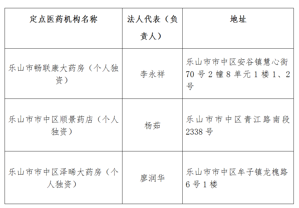 为加强和规范医药机构医疗保障定点管理,提高医疗保障基金使用效率,更好地保障广大参保人员权益,根据《医疗机构医疗保障定点管理暂行办法》(国家医疗保障局令第2号)和《零售药店医疗保障定点管理暂行办法》(国家医疗保障局令第3号)精神以及《四川省医药机构医疗保障定点评估细则》规定,经实地评估,报市中区定点医药机构协议管理领导小组审定,拟确定下列医药机构为乐山市市中区基本医疗保障定点医药机构: