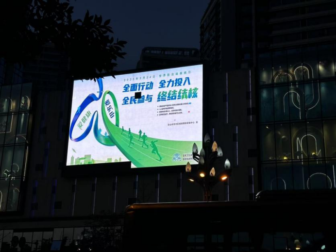 多部门联动,开展“亮灯行动”。联合区商务局等部门,于3月24日晚在市中区世豪广场、星悦荟广场两个城市地标性建筑开展“为终结结核病点亮城市的红”亮灯仪式,营造了浓厚的宣传氛围。
