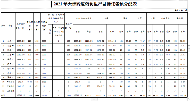 附件:2021年大佛街道粮食生产目标任务预分配表