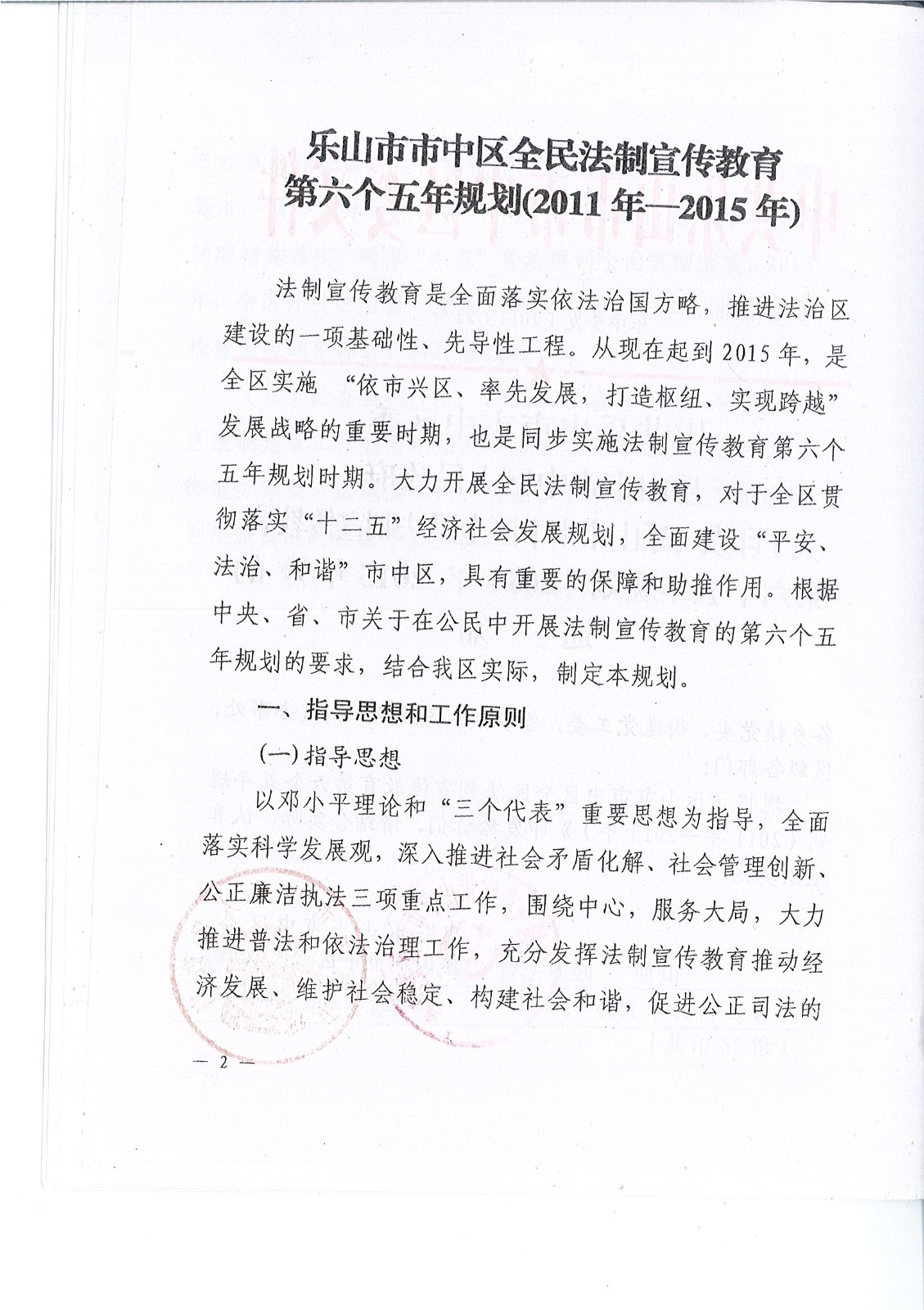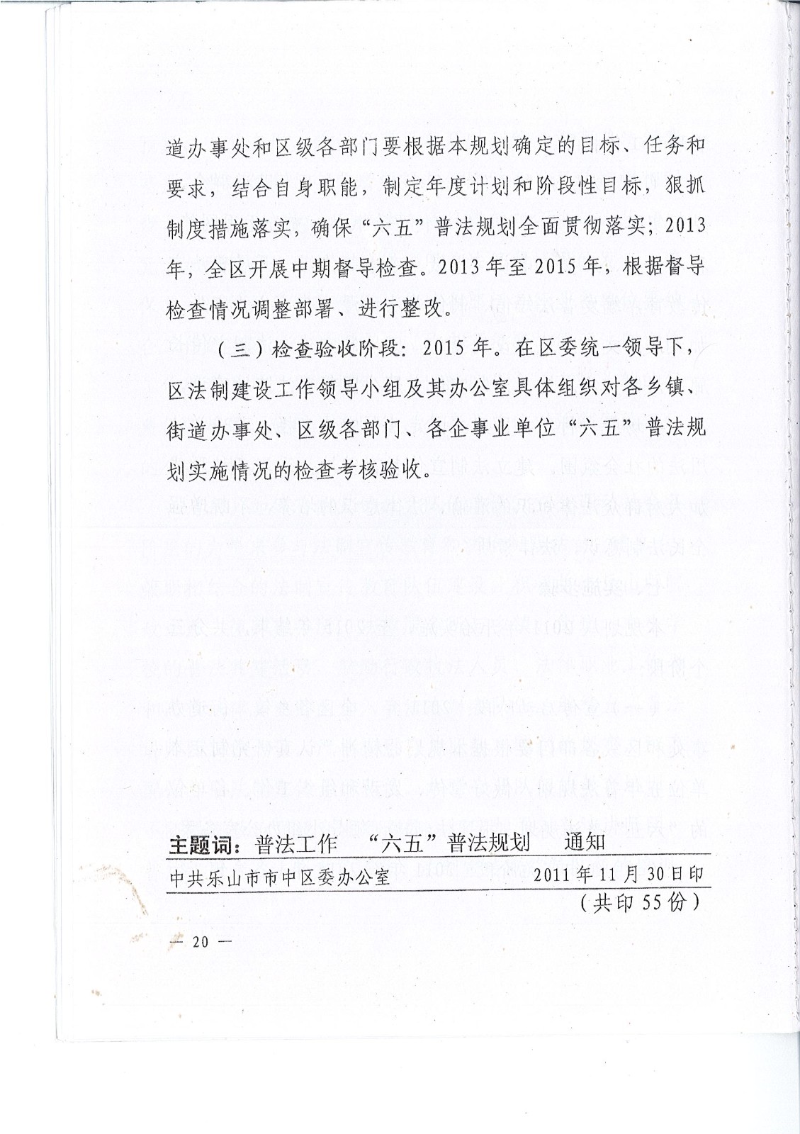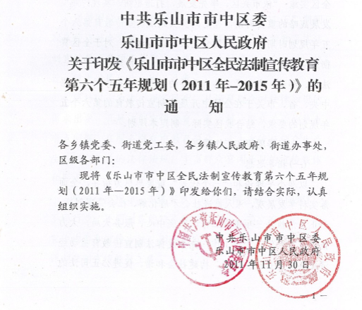 乐山市市中区全民法制宣传教育第六个五年规划(2011年-2015年))