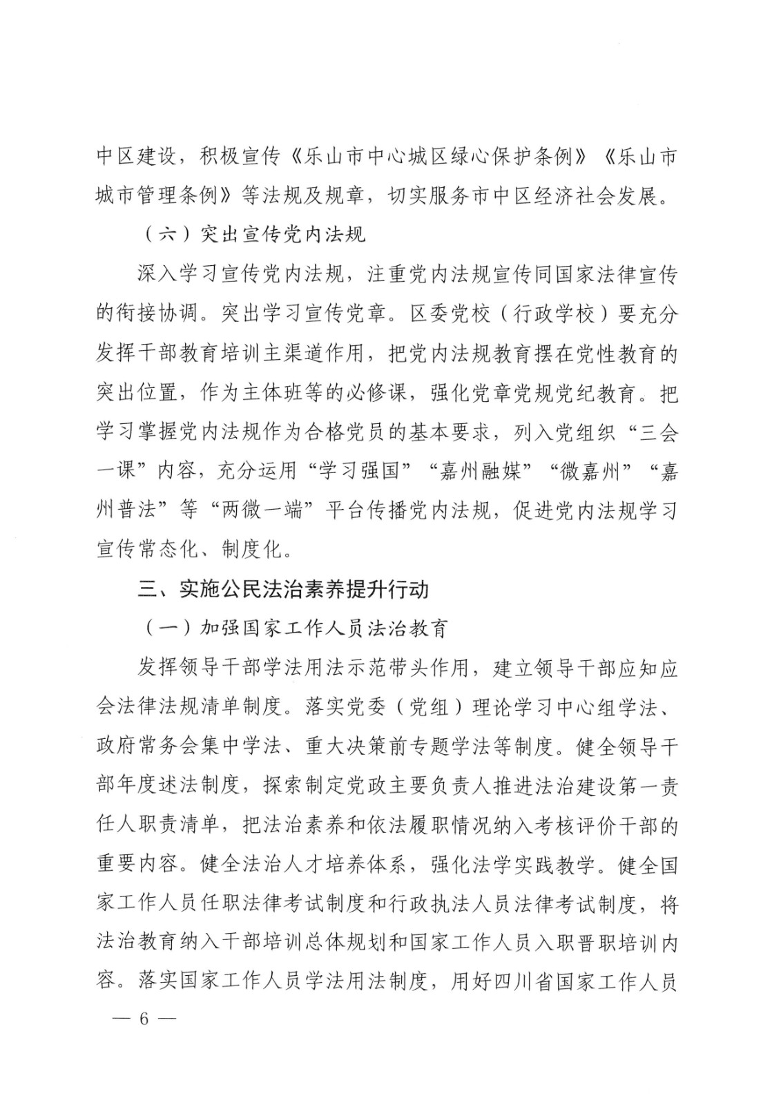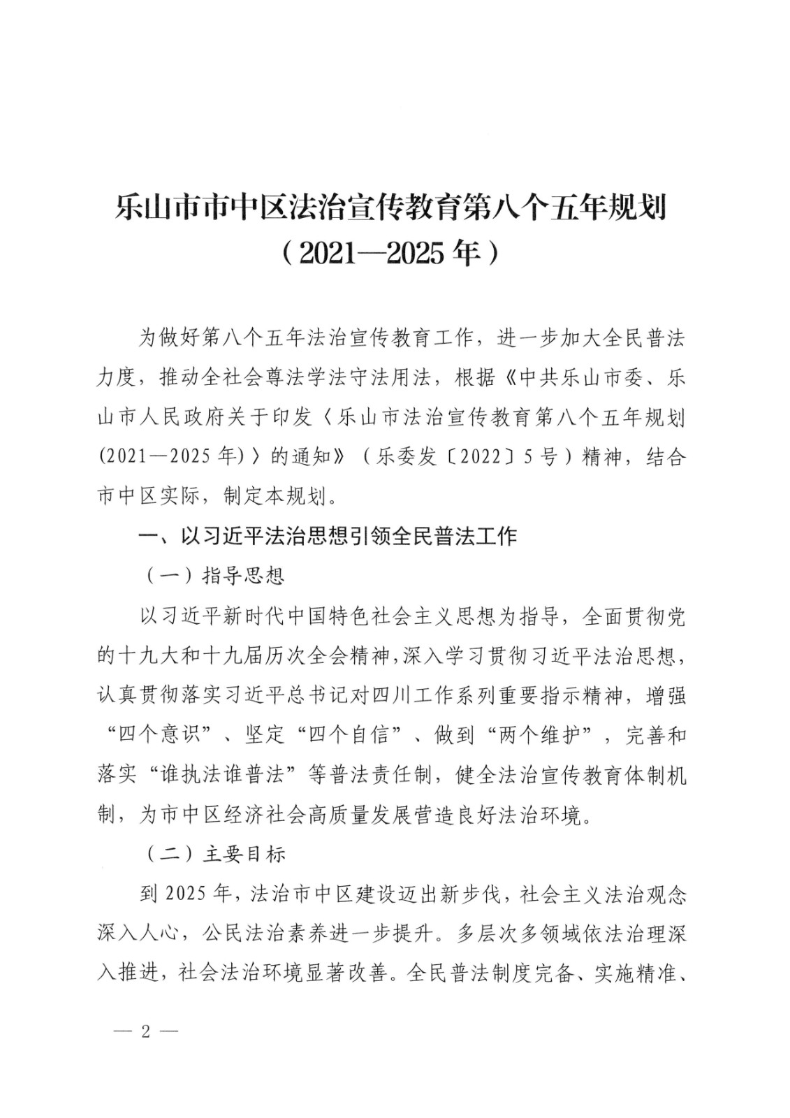 《乐山市市中区法治宣传教育第八个五年规划(2021—2025年)》